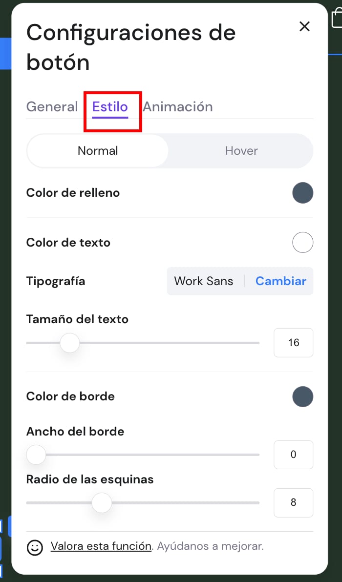 Aquí puedes encontrar la configuración de estilo global de lo siguiente: