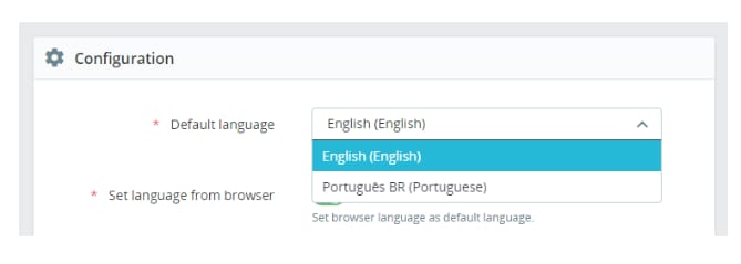 Después de unos minutos, el paquete estará listo. Ahora puedes cambiar el idioma desplazándote hacia abajo hasta la sección Configuración y seleccionando el idioma predeterminado de la lista: