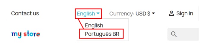 Para finalizar, haz clic en Guardar para aplicar los cambios. El idioma ahora estará disponible en tu tienda en el área de selección de idioma: