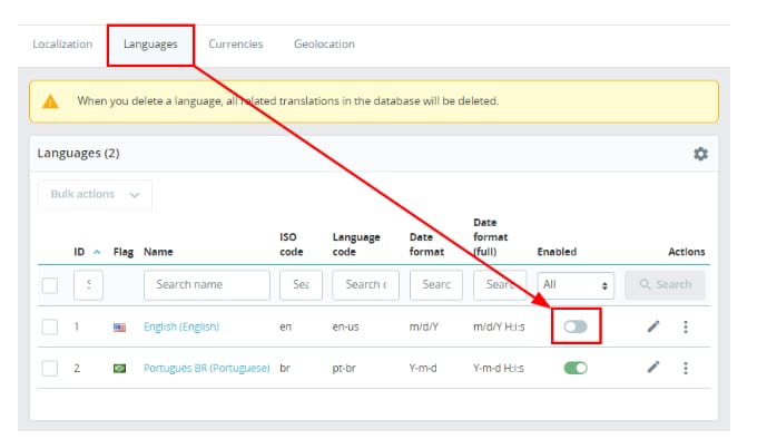 Después de que todos los demás idiomas estén deshabilitados, tu tienda se cargará solo en el idioma seleccionado 😊