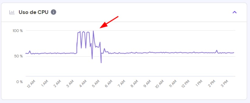 Te recomendamos monitorear el uso de la CPU para asegurarte de que esté por debajo de los límites en todo momento, así como elegir un plan con más recursos siempre que sea posible, para dejar espacio para picos inesperados en el uso de la orden. Esto ayuda a garantizar que el VPS siga respondiendo y funcionando bien, incluso bajo cargas de trabajo pesadas.