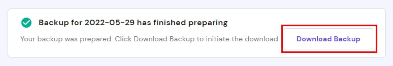 Ahora, dale un poco de tiempo: para los sitios web más grandes, pueden tardar hasta 30 minutos. Cuando esté listo, haz clic en Descargar copia de seguridad: