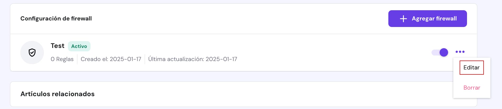 Los cambios en un grupo de Firewall de Hostinger se producirán en dos minutos o menos.