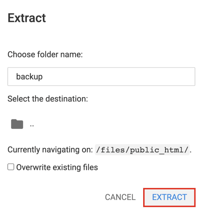 - Introduce un nombre de carpeta, por ejemplo, backup, y haz clic en Extraer: