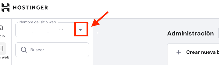 - Asegúrate de que en el menú de la izquierda esté seleccionado el sitio web correcto al que vas a subir la base de datos.