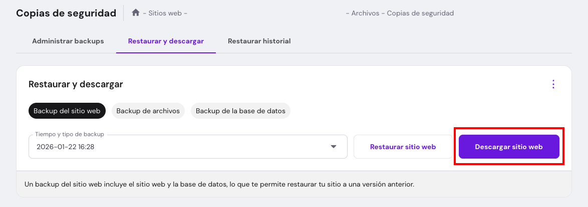 Paso 1 – Genera y descarga el backup de tu sitio web