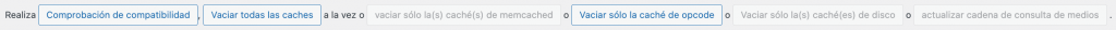 - Aparte del botón de vaciar todas las cachés, hay otros botones para eliminar varios tipos de caché, incluso para borrar sólo la caché de Memcached de la base de datos. Simplemente haz clic en el botón para iniciar la acción correspondiente.