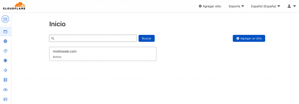 - Entra en tu panel de Cloudflare y haz clic en el dominio de tu sitio de WordPress.