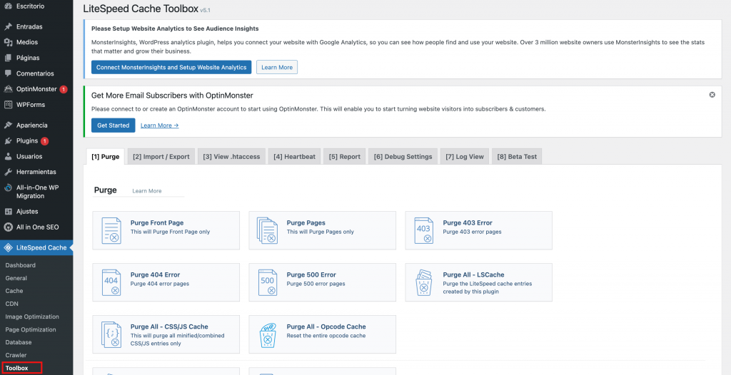 El plugin LiteSpeed Cache ofrece múltiples formas de limpiar la caché de WordPress. Desde establecer una purga automática de la caché basada en condiciones específicas hasta incluir URLs de sitios web específicos para una purga programada. Para ello, sigue las siguientes instrucciones: