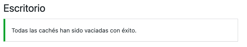 - El sistema comenzará a limpiar tu caché de WordPress. Una vez que haya terminado, deberías ver este mensaje.