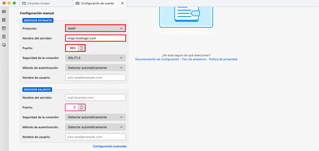 Configurar manualmente el correo electrónico en Mozilla Thunderbird