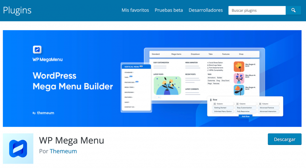 Construir un mega menú impresionante y totalmente funcional es mucho más fácil con el complemento WP Mega Menu. Esta herramienta tiene todo lo que necesitas para mejor cualquier menú predeterminado aburrido y sin vida de WordPress.