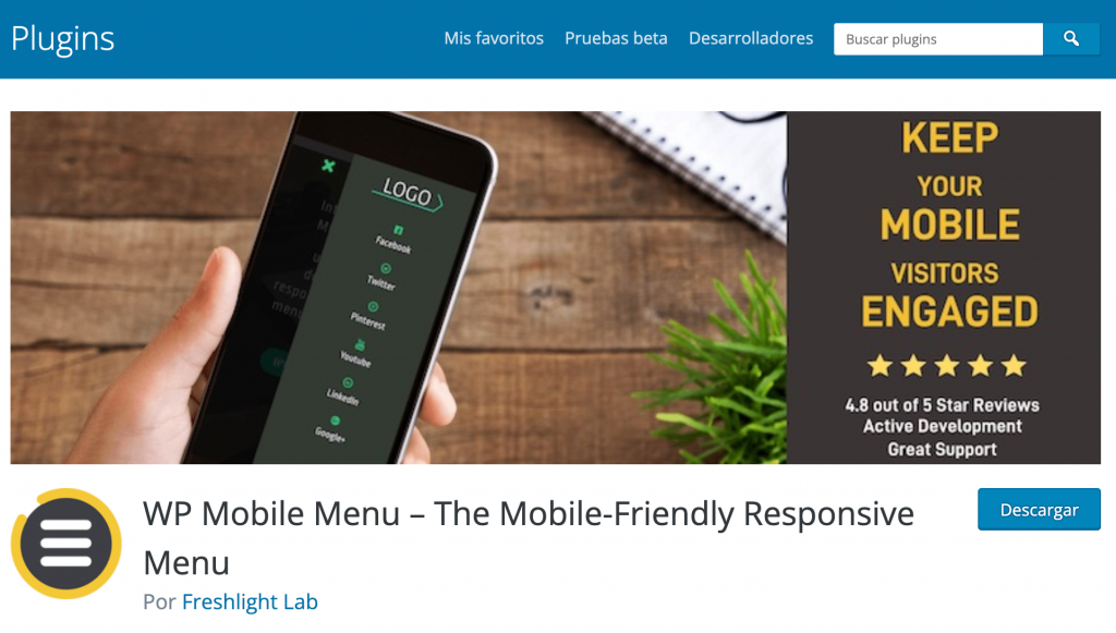 Para aquellos que desean optimizar el menú del sitio web para dispositivos móviles, WP Mobile Menu Plugin es la mejor solución. Este plugin ofrece un menú rápido, sencillo y receptivo diseñado específicamente para mejorar la experiencia de tu sitio en dispositivos móviles.