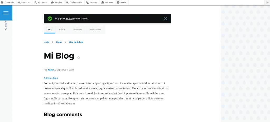 Con Drupal, puedes crear un sitio de blog totalmente funcional. Sin embargo, el módulo Blog ya no se incluye en el núcleo del software, a partir de Drupal 8. Por lo tanto, tendrás que descargar e instalar el módulo contribuido manualmente.