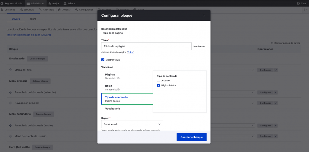 Los bloques son cajas de contenido que se representan en una región. Por ejemplo, se puede agregar un inicio de sesión de usuario (bloque) al pie de página de tu sitio web (región).
