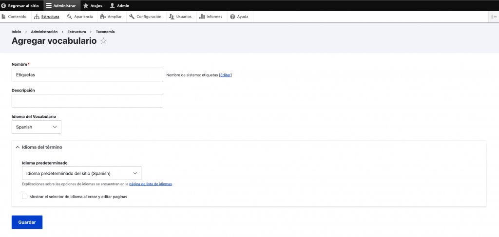 Crear una taxonomía es fácil. Puedes hacerlo siguiendo estos pasos del tutorial de Drupal: