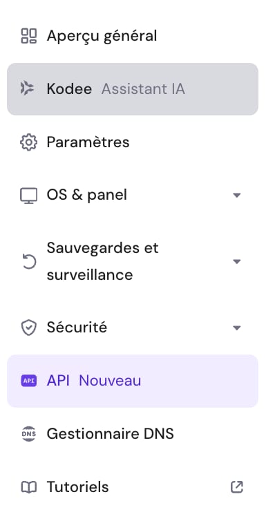 2.1. Accédez à votre VPS et recherchez la section API dans le menu latéral