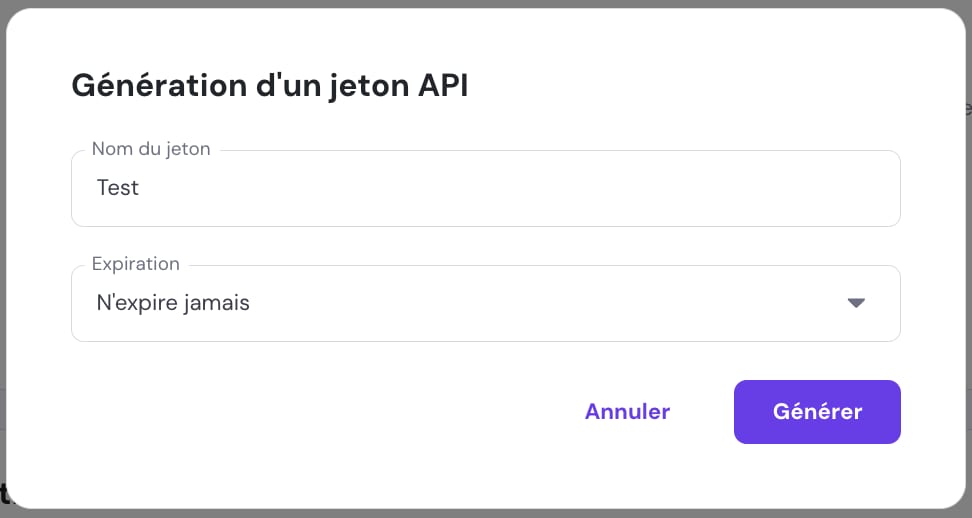2.4. Copiez votre jeton API et conservez-le dans un endroit sécurisé
