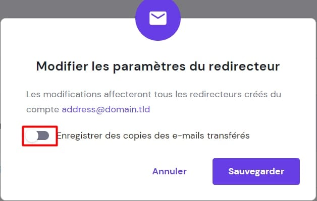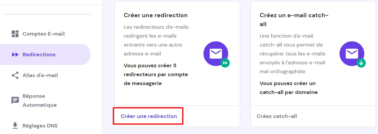 Redirections internes – D’un compte email Hostinger vers un autre compte email Hostinger (les enregistrements MX des deux domaines doivent pointer vers Hostinger).