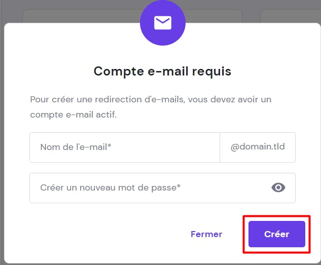Afin de créer des redirections pour vos emails, ouvrez la page Emails → nom de domaine → Redirections et cliquez sur Créer une redirection :