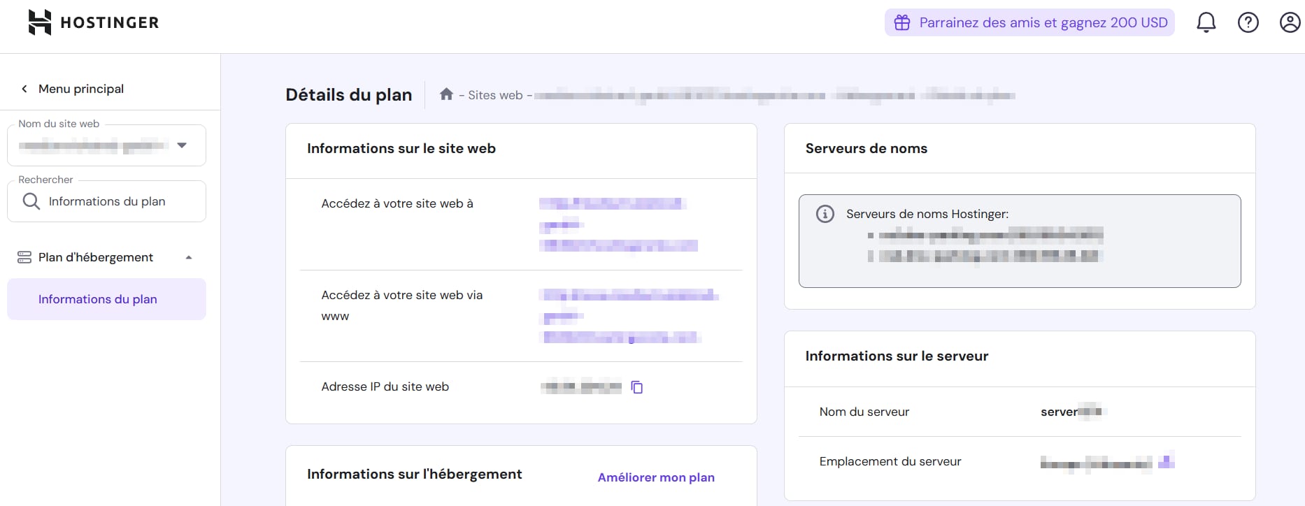 Si vous avez plusieurs plans d’hébergement, vérifiez que le nom d’hôte correspond à l’adresse IP du plan d’hébergement où votre site web est hébergé.