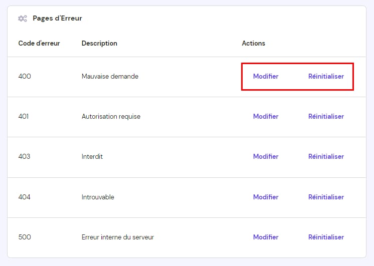La plupart des erreurs affichées par votre site web peuvent être entièrement personnalisées. Vous pouvez soumettre votre propre code HTML qui sera utilisé comme page d’erreur pour votre site web.