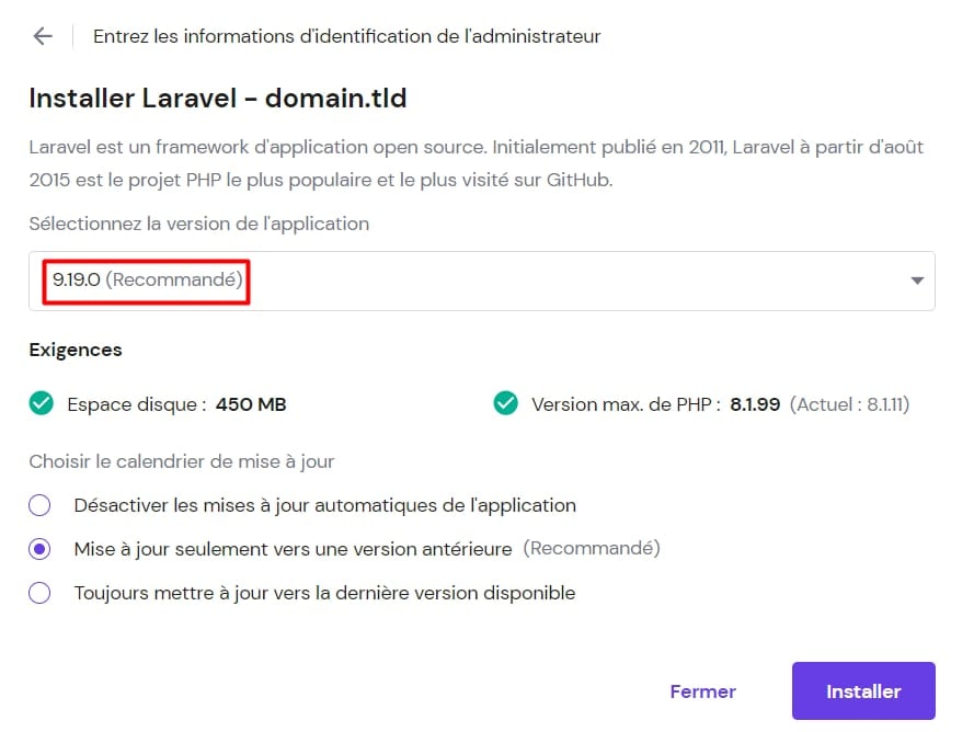 Vous pouvez utiliser le programme d’installation automatique pour installer Laravel sur votre plan d’hébergement, y compris la dernière version 10x. Assurez-vous de définir votre version de PHP sur 8.1 au préalable.