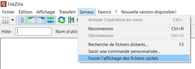 Si vous utilisez un client FTP tel que FileZilla, vous pouvez le configurer pour afficher tous les fichiers cachés par défaut – accédez simplement au menu Serveur et sélectionnez Forcer l’affichage des fichiers cachés :