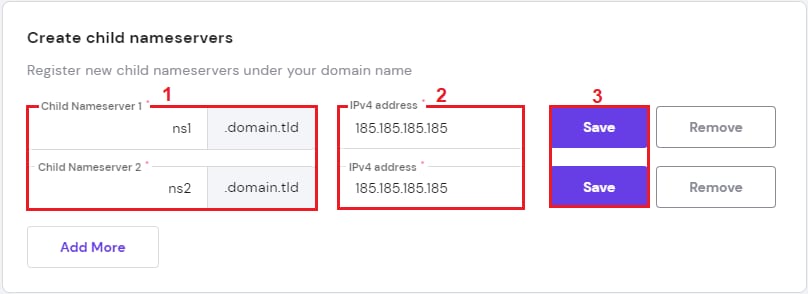 Gardez à l’esprit que certains noms de domaine ne prennent pas en charge les serveurs de noms enfants. Pour plus d’informations, contactez notre équipe chargée de la réussite des clients.