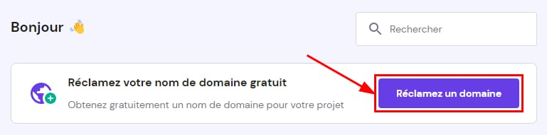 Si vous avez manqué l’occasion de réclamer un nom de domaine gratuit lors de la commande de votre forfait, ne vous inquiétez pas, vous pourrez le faire à partir de votre tableau de bord :