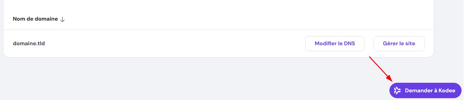 Si vous avez un compte Hostinger, connectez-vous et cliquez sur le bouton « Demander à Kodee » dans le coin inférieur droit de n’importe quelle page hPanel :