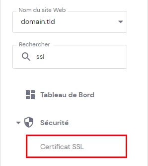 Ouvrez Sites web Gérer, recherchez SSL dans la barre latérale de gauche et cliquez dessus :