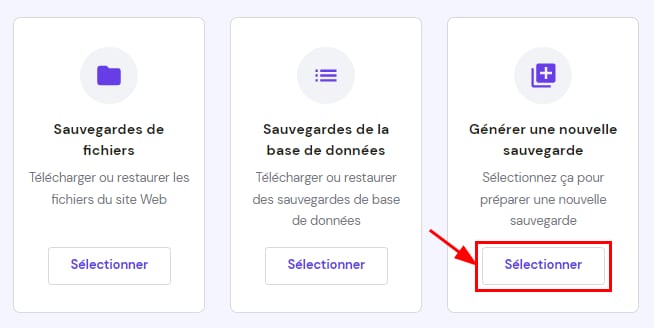 Une fois là, cliquez sur Sélectionner sous la section Générer une nouvelle sauvegarde: