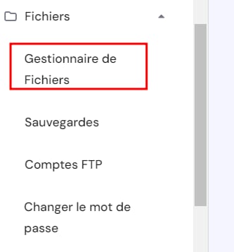 Si vous avez déjà créé un site web, vous pouvez simplement téléverser les fichiers du site web à l’aide de la fonction Gestionnaire de Fichiers Allez dans Sites web → Gérer, recherchez Fichiers – Gestionnaire de Fichiers dans la barre latérale gauche et cliquez dessus pour démarrer le processus: