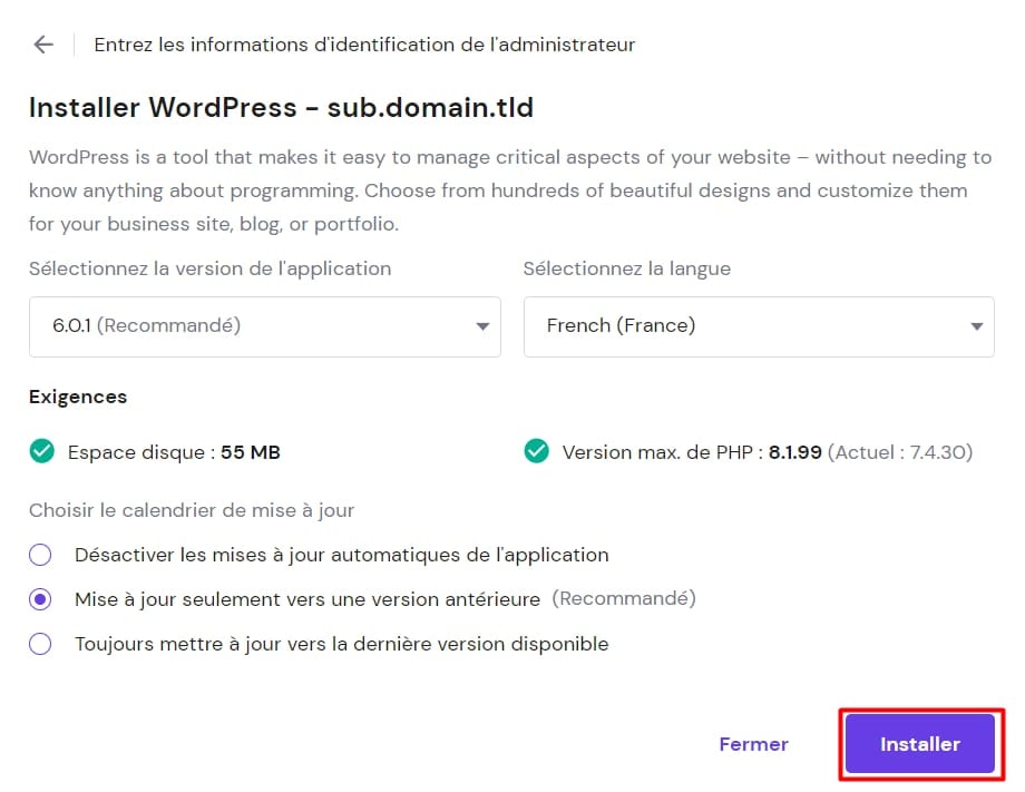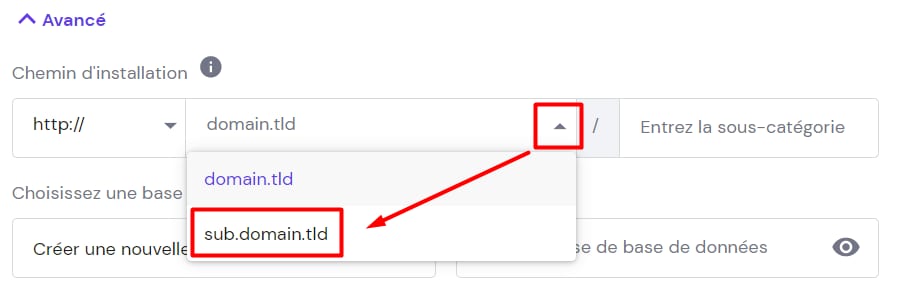 Vous pouvez également choisir d’installer WordPress sur un sous-domaine :