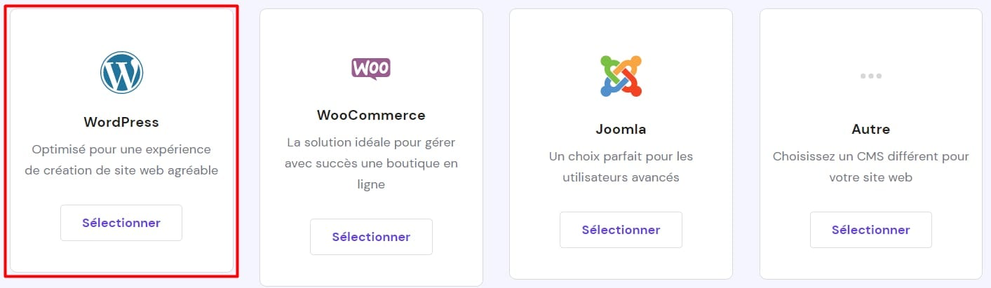 Ensuite, sélectionnez WordPress :