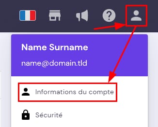 Vous pouvez facilement modifier l’e-mail de votre compte en vous connectant à votre compte Hostinger. Dans hPanel, cliquez sur l’ icône de profil et choisissez l’ option Informations du compte :