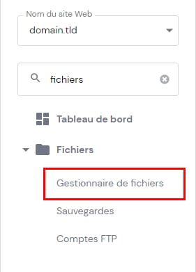 Accédez à Sites web → Gérer, recherchez Gestionnaire de fichiers dans la barre latérale et cliquez dessus :