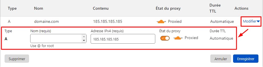 Gestion des enregistrements DNS (NS, TXT, MX, A, etc.) chez Cloudflare