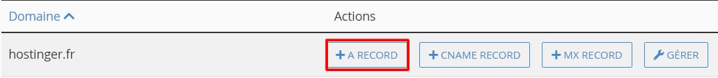 Pour créer un enregistrement A, il suffit de cliquer sur le bouton + A RECORD :