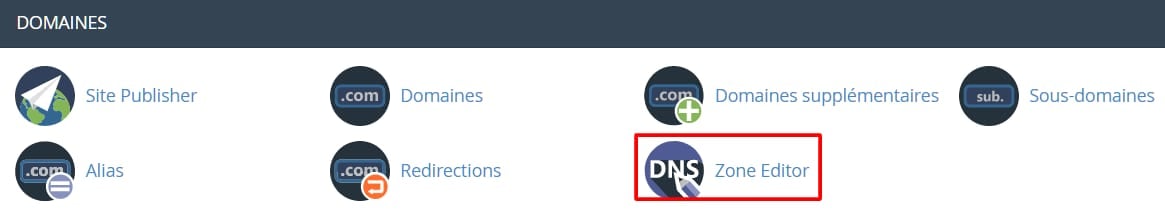 Vos enregistrements A peuvent être facilement gérés à l’aide de la section Zone Editor, qui se trouve dans votre panneau de contrôle. Ouvrez votre cPanel et trouvez Domaines → Zone Editor :