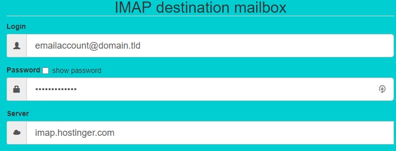Sur la gauche, ajoutez votre adresse e-mail complète, votre mot de passe et le nom du serveur IMAP de l’email à partir duquel vous souhaitez vous déplacer.