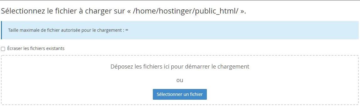 Si vous souhaitez téléverser un fichier plus volumineux, vous pouvez utiliser un client FTP, car il n’y a pas de limite de taille pour téléverser des fichiers via FTP.