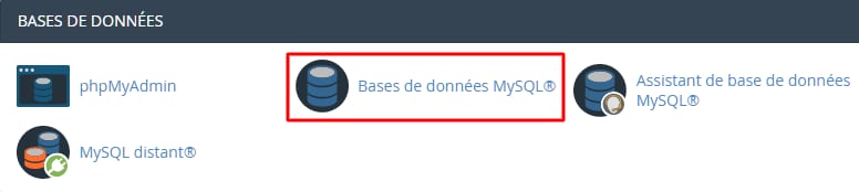 Vous pouvez facilement créer une nouvelle base de données MySQL en ouvrant votre cPanel et en cliquant sur la section Bases de données MySQL :