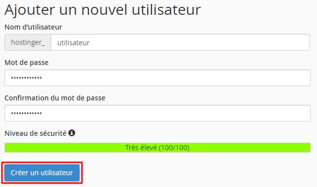 Une fois que vous avez fait cela, faites défiler la section Ajouter un nouvel utilisateur, choisissez le nom d’utilisateur, le mot de passe et cliquez sur Créer un utilisateur :