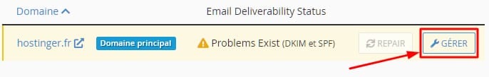 Cliquez sur le bouton Gérer du nom de domaine pour lequel vous souhaitez établir un enregistrement SPF: