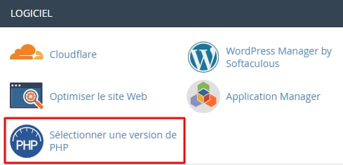 Pour ce faire, accédez à votre cPanel → section Logiciel → Sélectionner une version de PHP :