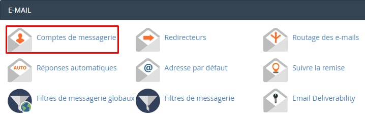 Vous pouvez accéder à la messagerie Web en accédant à votre compte cPanel → section Comptes de messagerie :