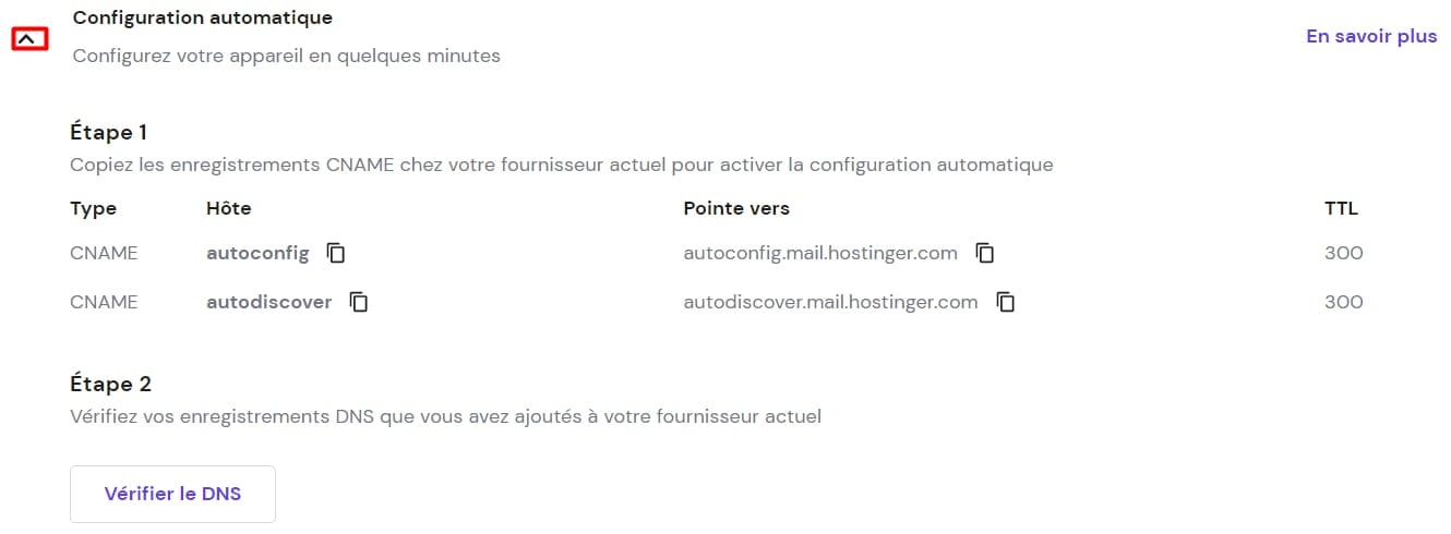 Dans les deux cas, la propagation des enregistrements DNS peut prendre jusqu’à 24 heures. Une fois la propagation terminée, vous pouvez profiter de la configuration automatique des e-mails 🎉