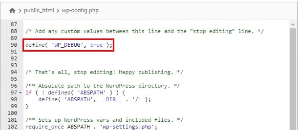 Si ce code n’existe pas dans votre fichier wp-config.php, vous pouvez l’ajouter au-dessus du